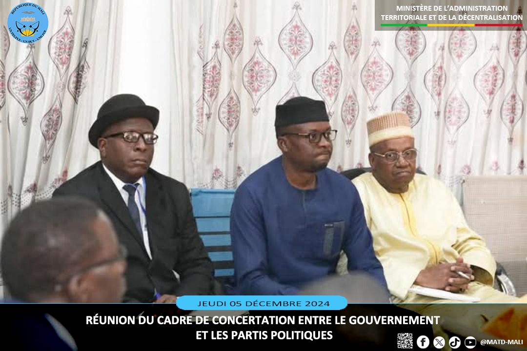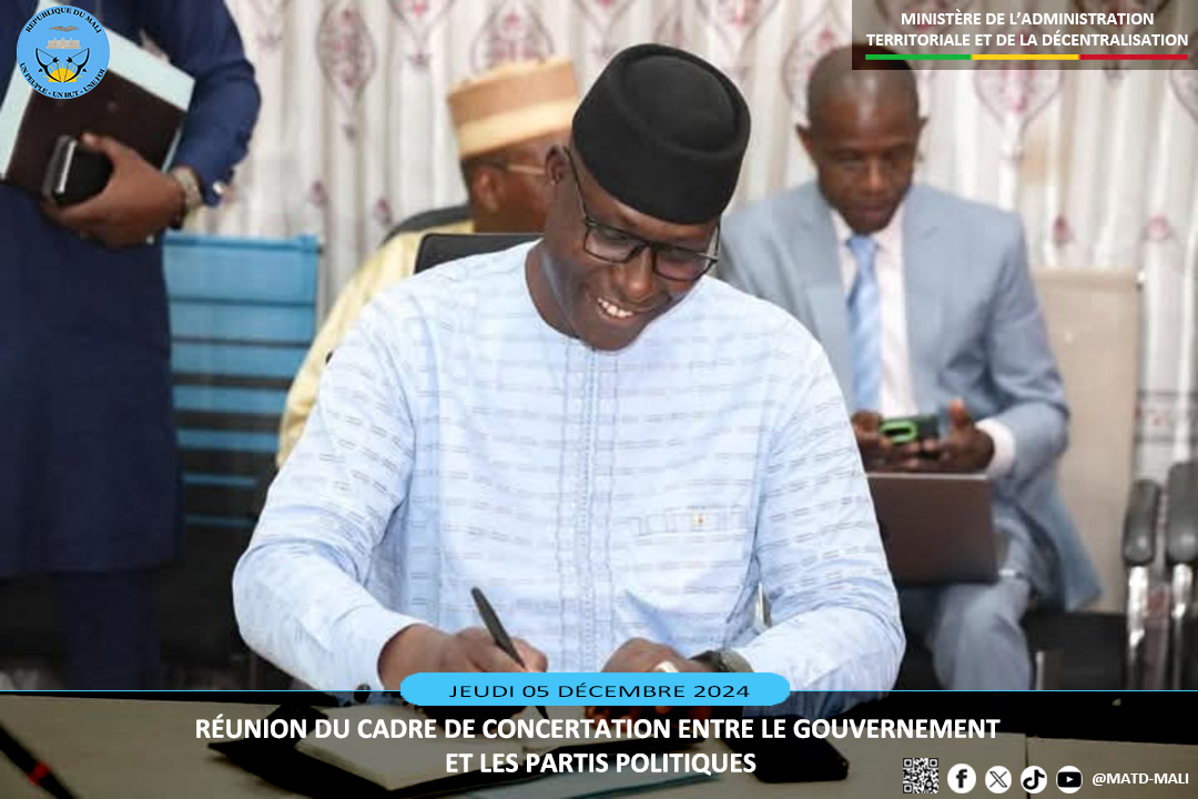 A l’occasion de la réunion hebdomadaire consacrée à l’examen des dossiers du Conseil des Ministres, ce lundi 17 novembre 2025, le Secrétaire général du Ministère de l’Administration territoriale et de la Décentralisation, M. Adama SISSOUMA, a procédé à la présentation de deux nouveaux conseillers Techniques fraichement nommés par le Ministre de l’A...