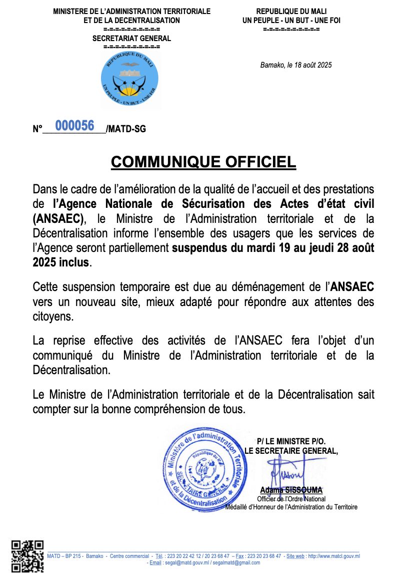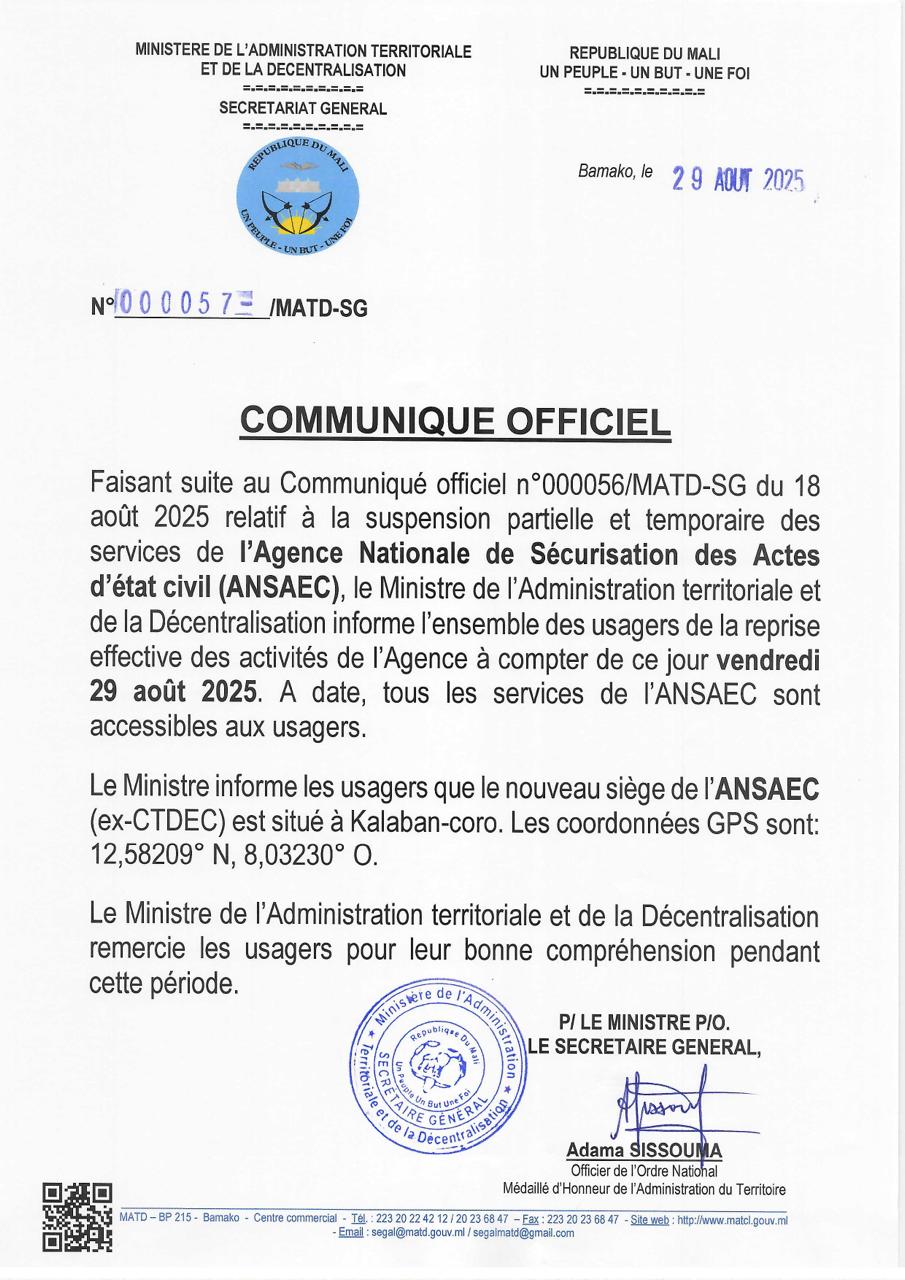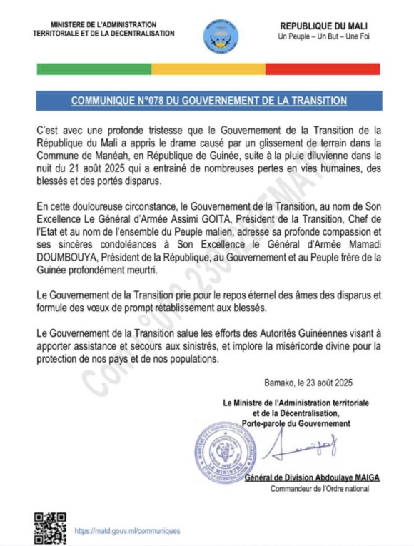 COMMUNIQUE N°080 DU GOUVERNEMENT DE LA TRANSITION...